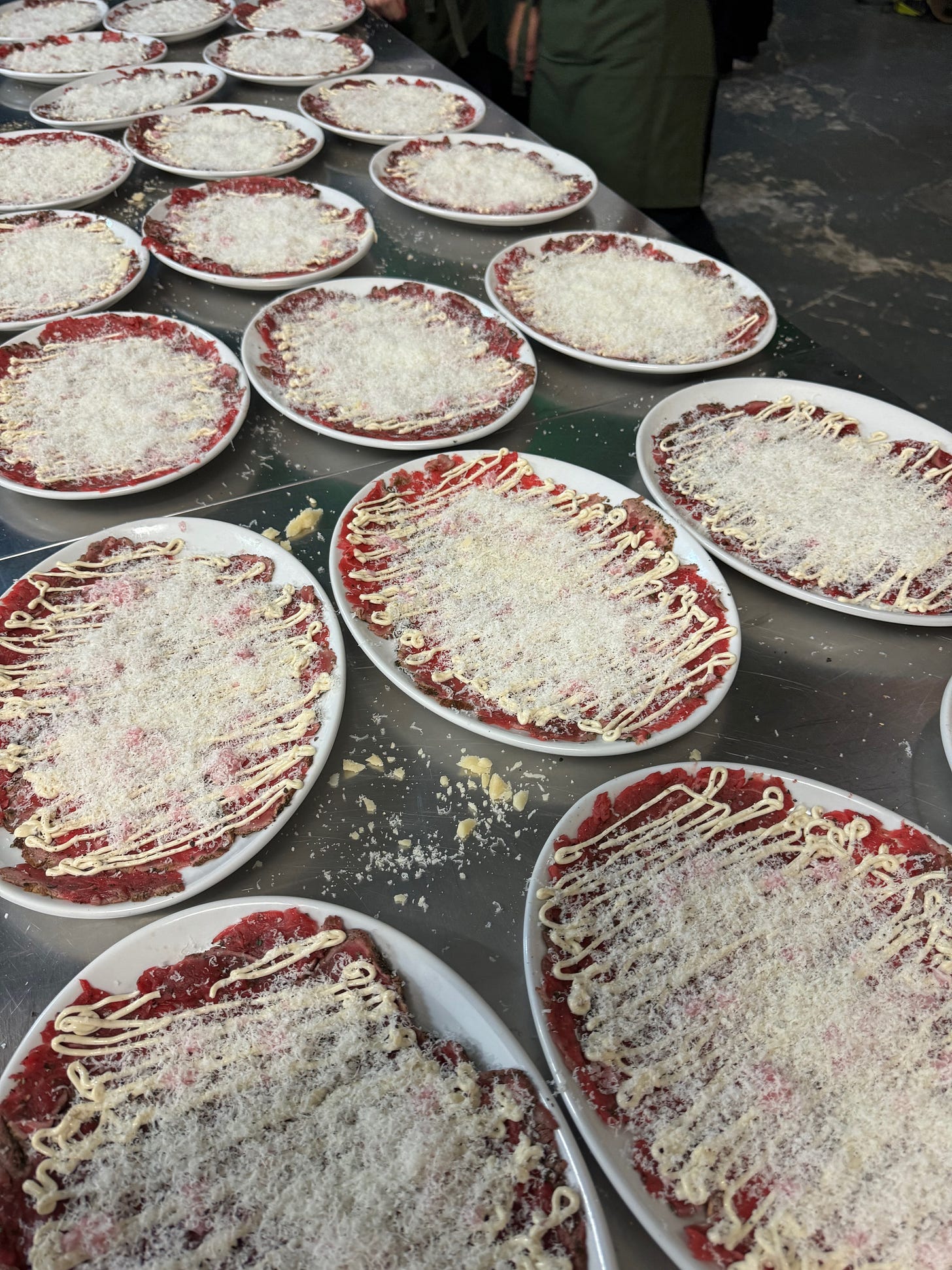 While France lays claim to tartar, Italy has the carpaccio. Carpaccio was invented in 1963 by Giuseppe Cipriani from Harry’s Bar in Venice, modelled on the Piedmontese dish carne cruda all'albese (raw Alba-style meat) and once on the menu, travelled far and wide, becoming mega popular in the 70s and 80s. You’ll find it in heaps of restaurants now, from neighborhood Italian joints to 3 star halls of gastronomy. You’ll also find it made with all sorts beyond the world of beef. Octopus, veal, prawn, seabass, venison, salmon, tuna - they’ve all been carpaccio’d, for better or for worse. I once had a carrot carpaccio and that was for worse!