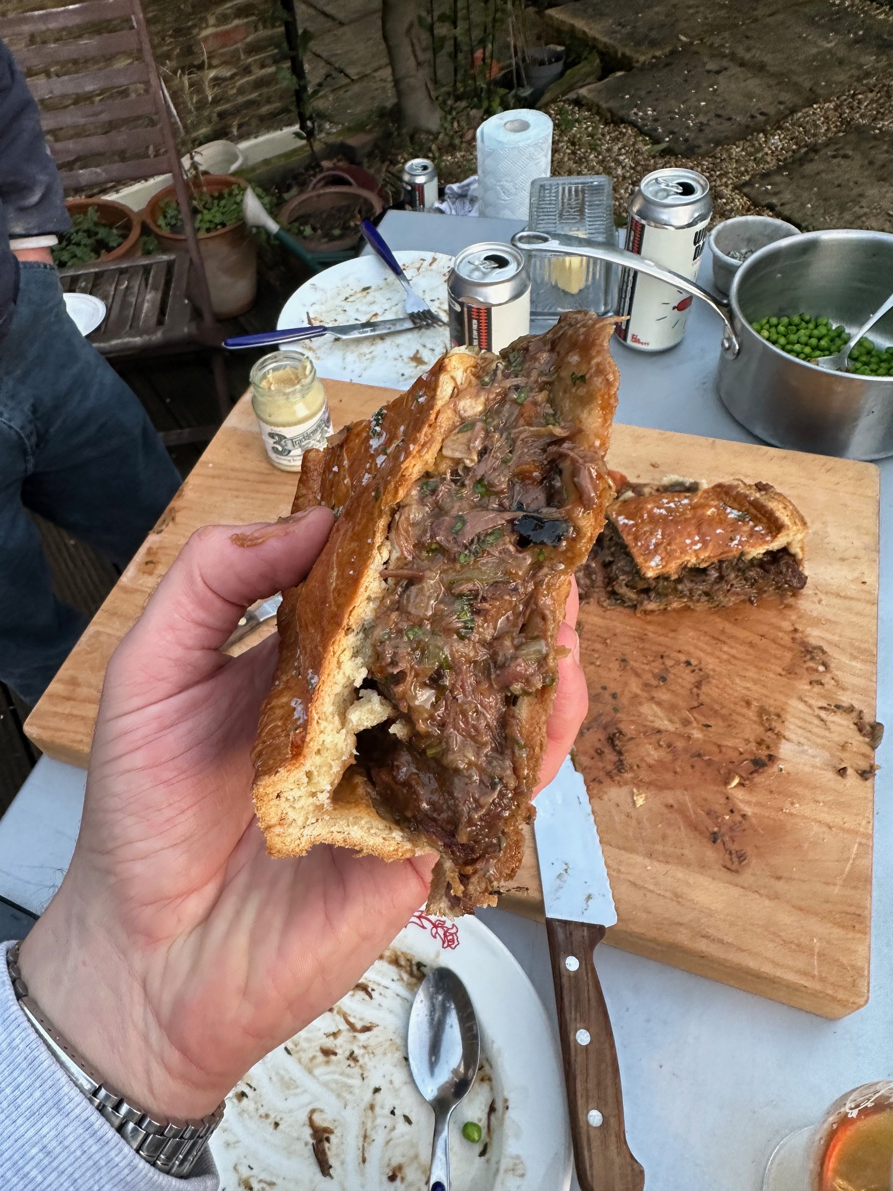 This is Will’s secret weapon. When he told me he was bringing a homemade oxtail stock, I knew this pie would be a corker.