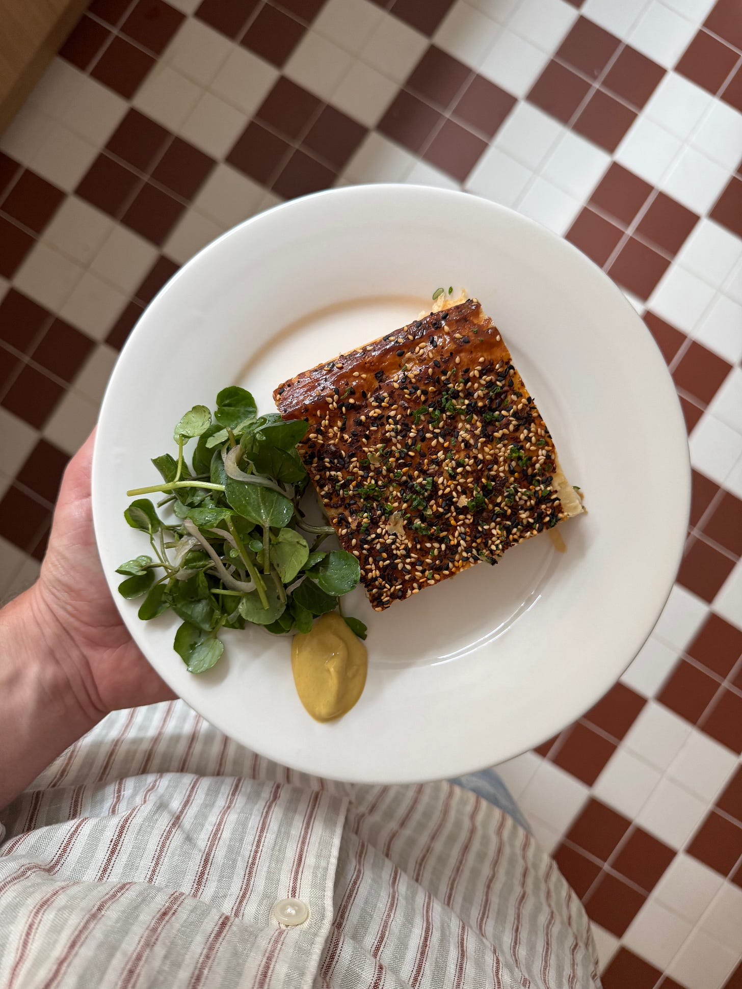 To transform this into a lovely lunch plate, dress a little watercress and shallots, with a mustardy vinaigrette and serve on the side. A dollop of dijon would be lovely, too. Not only does this make a pretty spot on lunch warm from the oven, it’s also great wrapped up and taken on the move. Flash it through the oven again to bring back to life or if you’re oven-less, it’s still very delicious cold.